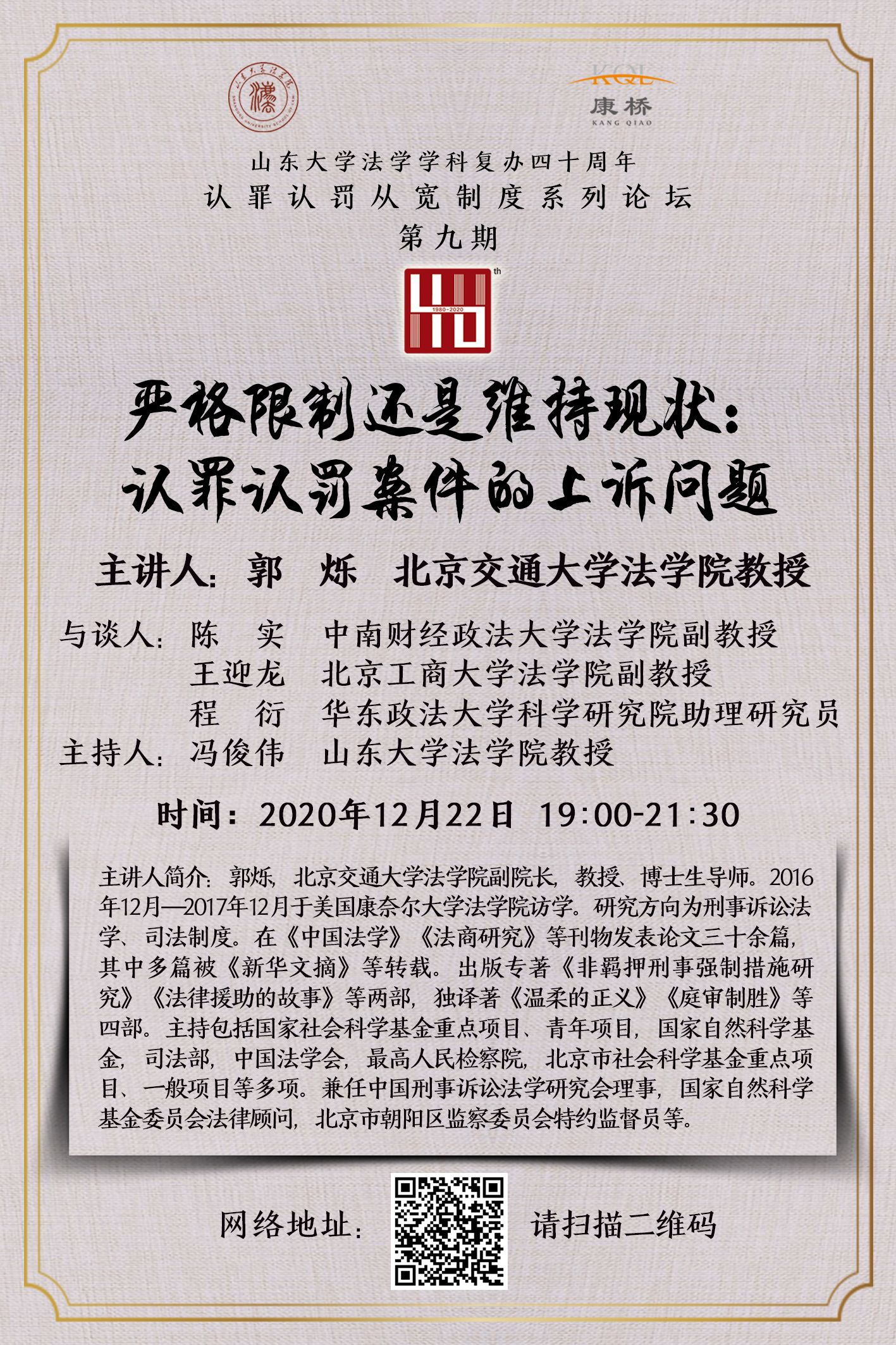 威尼斯144777视频官网法学学科复办四十周年认罪认罚从宽制度系列论坛第九期