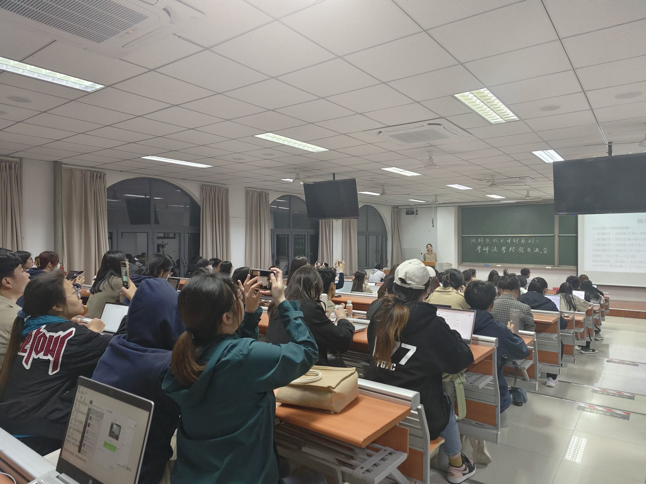 在经验分享中,几位主讲嘉宾根据自己的经验,从不同的方面提出了自己的建议。戴亚晶同学从自身经历讲起,给出了专业选择、时间规划、心态调整的策略和建议。左有铭同学讲解了考研的战略和各科复习要点,同时激励同学正视自己,挑战自我。梁晓琳同学强调选择的重要性,指出在备考的不同阶段应调整复习重心,掌握学习节奏。姜智慧同学分享了自己择校的经验,介绍了公共课的备考和答题技巧,并建议同学应当重视专业课的背诵。袁思同学分析了双考的必要性和可行性,着重介绍了自己所学习的日语,建议日背班同学积极报考专业测试。张诚同学介绍了法考的基本信息和几位法考辅导老师的特点,提醒同学应慎重选择老师和复习资料,并强调做题和熟悉法条的重要性。