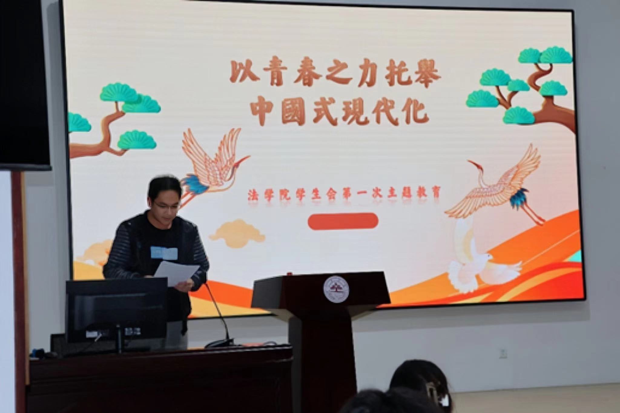 学生会各部门以日常工作开展、品牌活动打造为中心,依次汇报了近期工作总结和新学期工作计划。在新学年中,各部门加强协调联动,进一步推进法学特色品牌活动建设,为威尼斯144777视频官网学生提供切实、多样的服务。秘书处部长王一迪和学术部部长尹顺正分别进行报销流程和新闻稿撰写培训,以期提升学生会成员工作能力,为新学期学生会工作开展打下坚实基础。主席团成员王艺博主持开展“中国式现代化”主题教育团课,辩证全面地介绍了当代青年与中国式现代化的关系,勉励全体成员共同学习、共同进步。