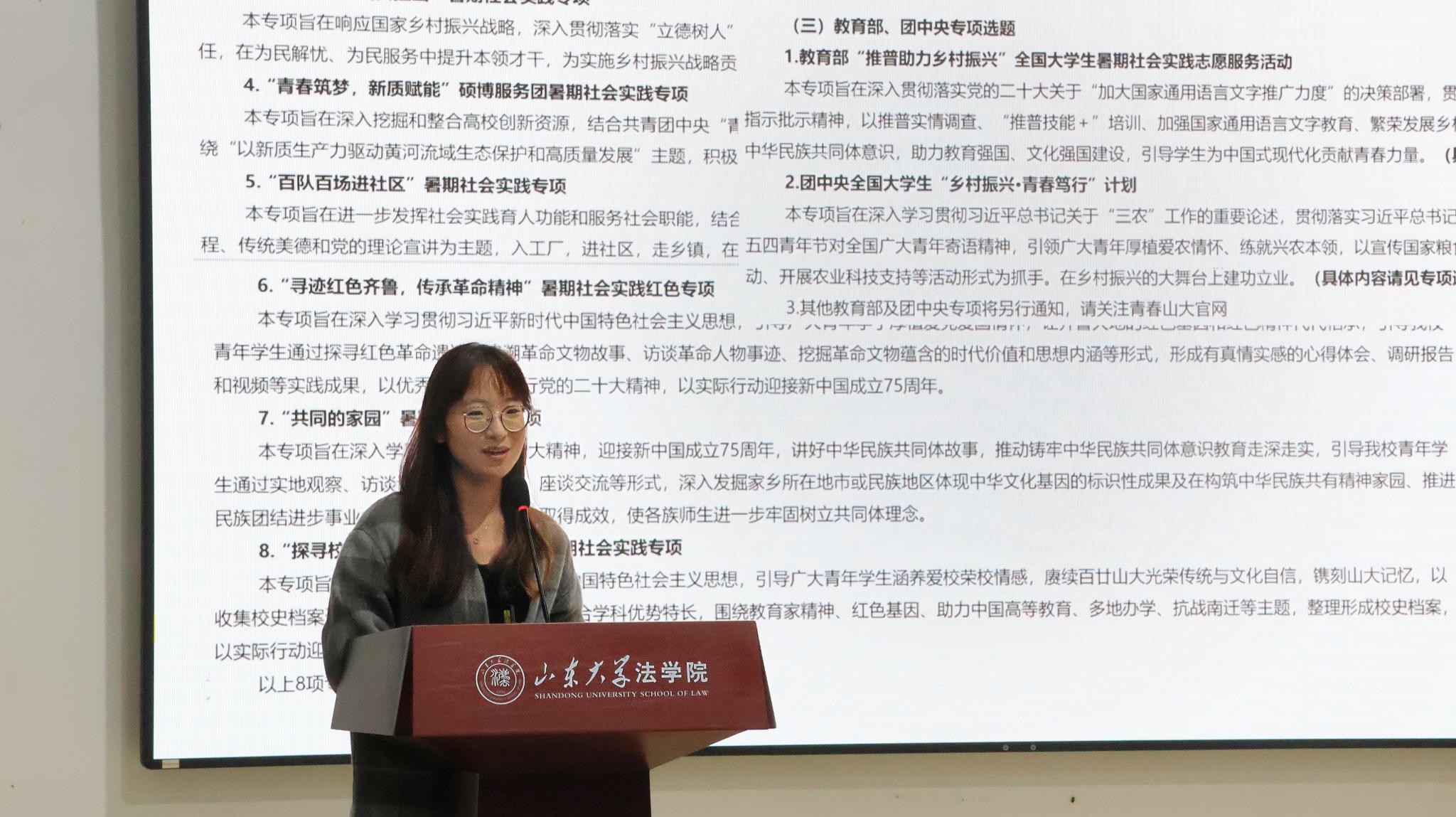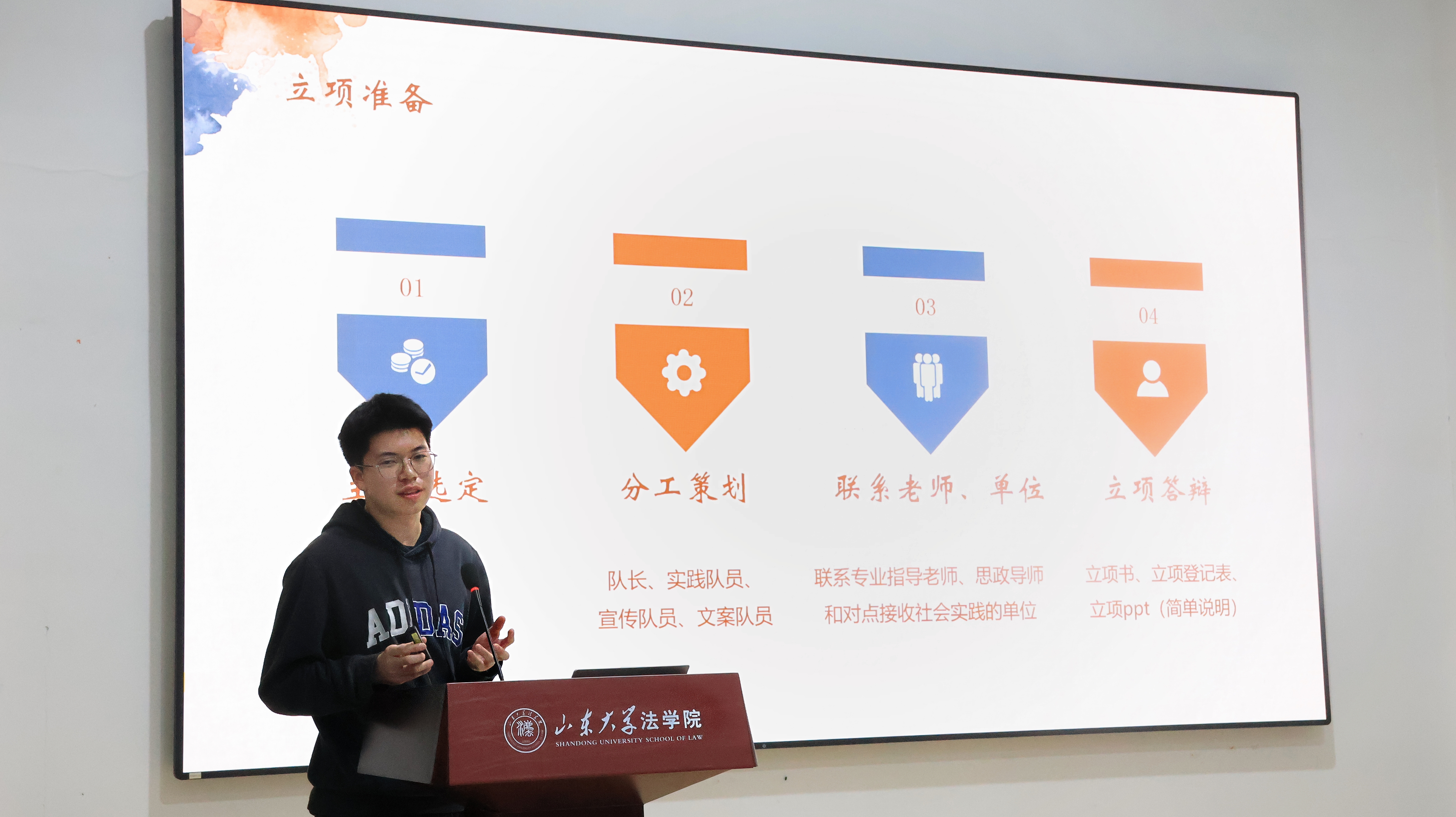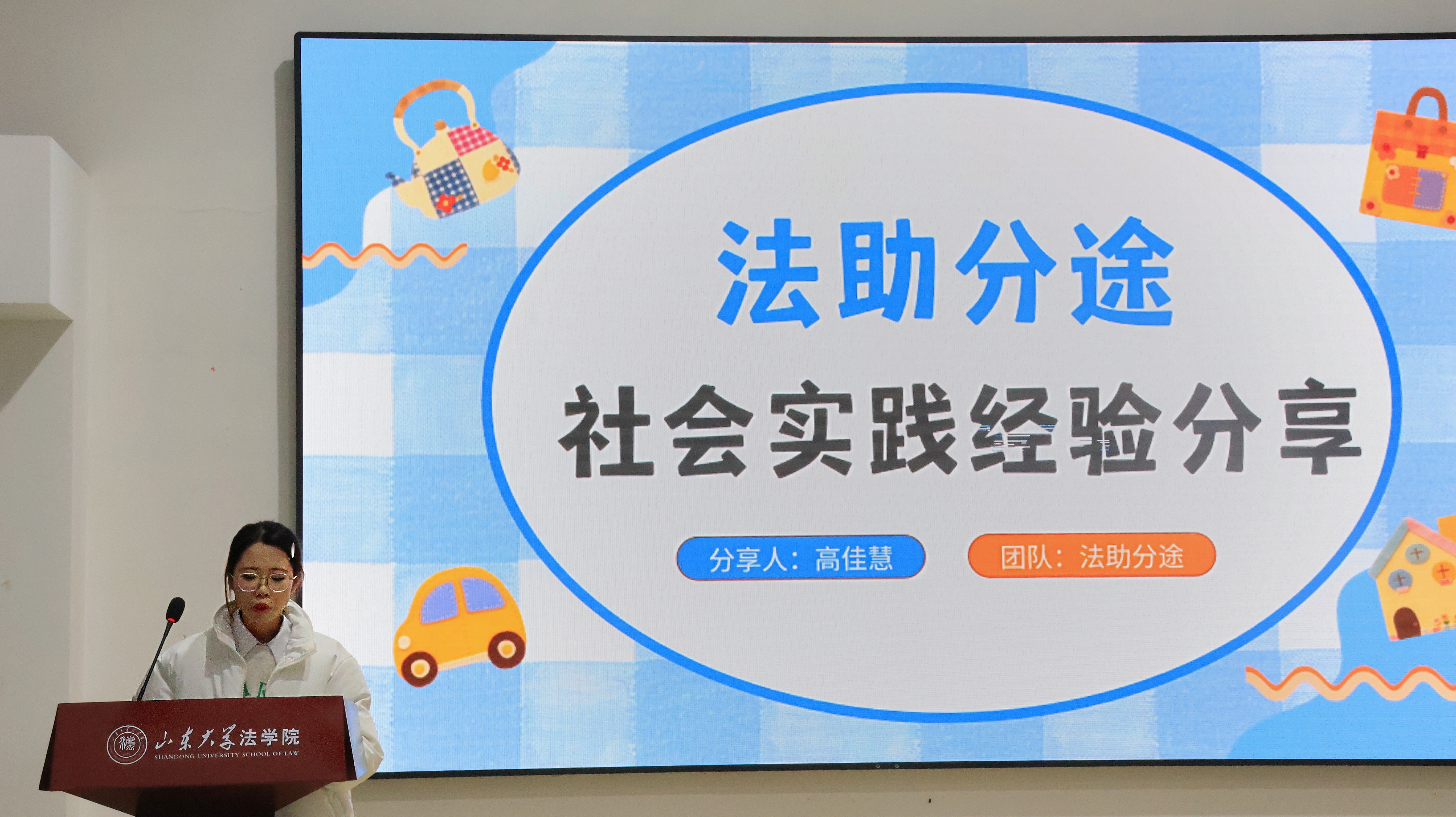 “法助分途”团队的高佳慧从怎样选题、怎样开展、怎样宣传三个方面对社会实践流程进行了细致的讲解。她表示,在选题时,要始终践行为民初心,关注社会热点,并结合法学学科特色,从日常生活和切身体会出发,提出有意义的问题。同时,她详细分析了各大宣传平台的优势和特点,特别是团队创新的“营销号宣传方式”,让同学们印象深刻,获益匪浅。