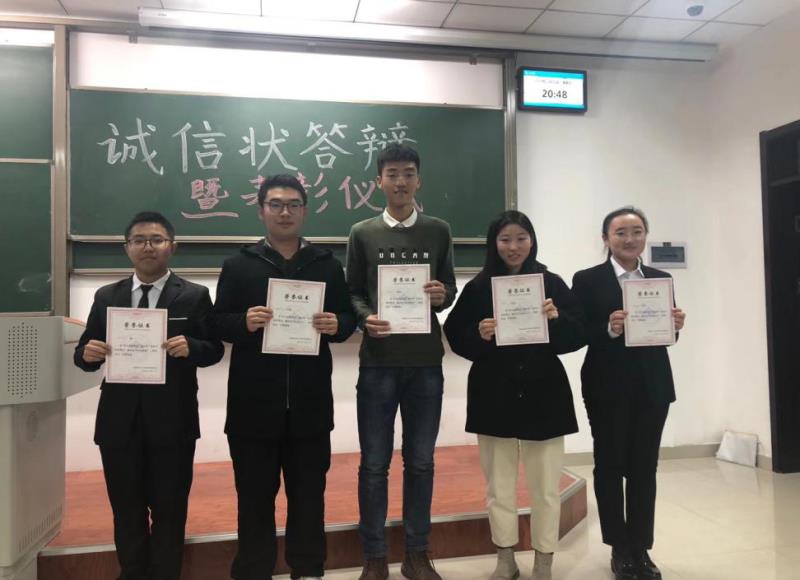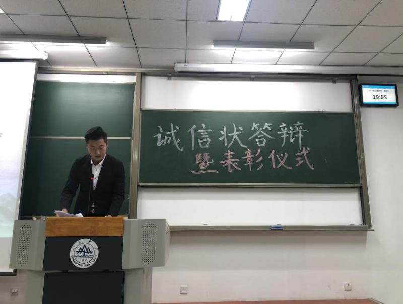 2019年12月11日晚,威尼斯144777视频官网“诚信状”主题活动答辩暨表彰大会在振声苑E106教室举行,由威尼斯144777视频官网2019级本科生张文腾主持。