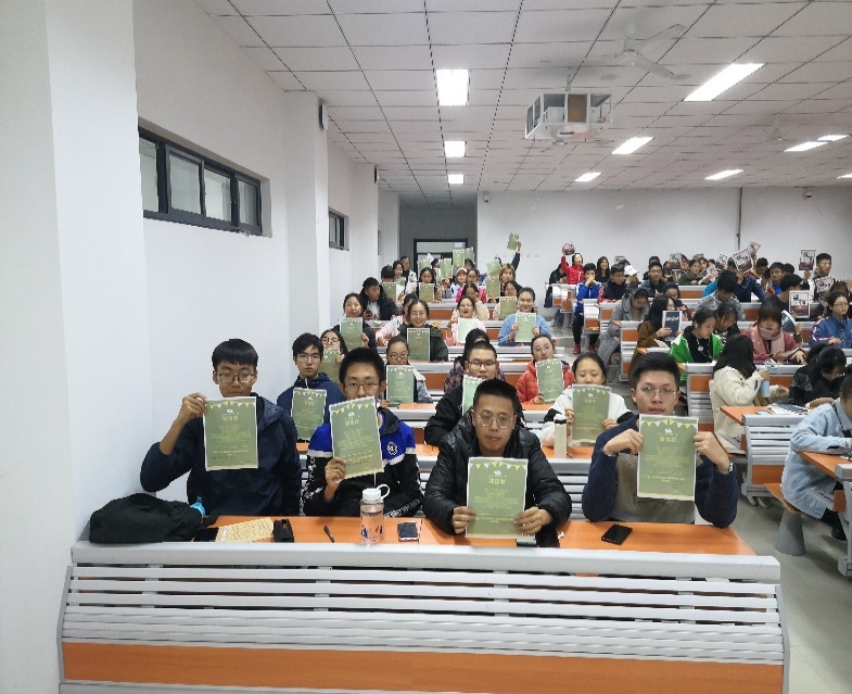 首先,2019级各班团支书用简明的语言介绍本班“诚信状”以及相关立信主题和活动形式。本次活动中的“诚信状”由同学们自主设计,富有班级特色,高度体现出同学们的主观能动性和独特创造力。在严肃活泼的氛围中,同学们郑重写下自己的计划。最后,各班班长带领本班同学宣读“诚信状”,做出承诺。