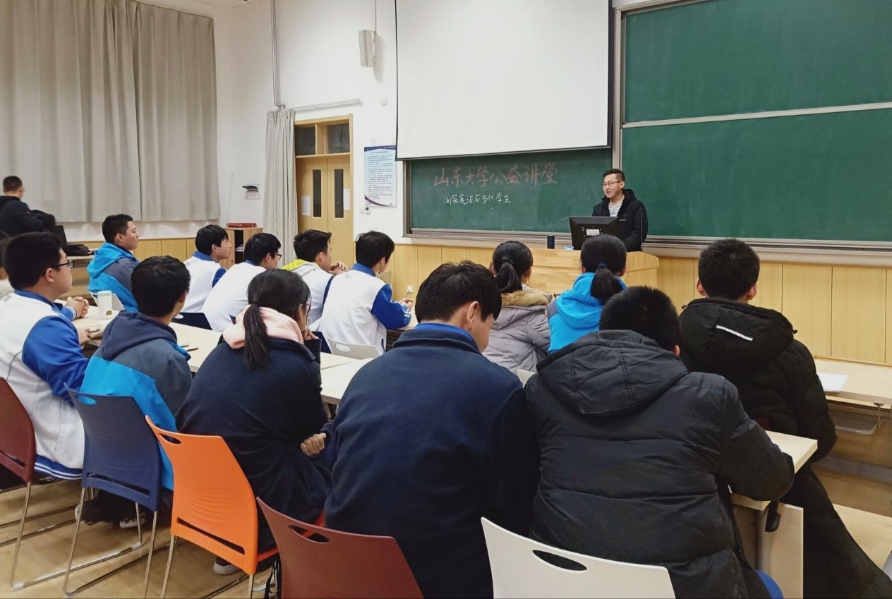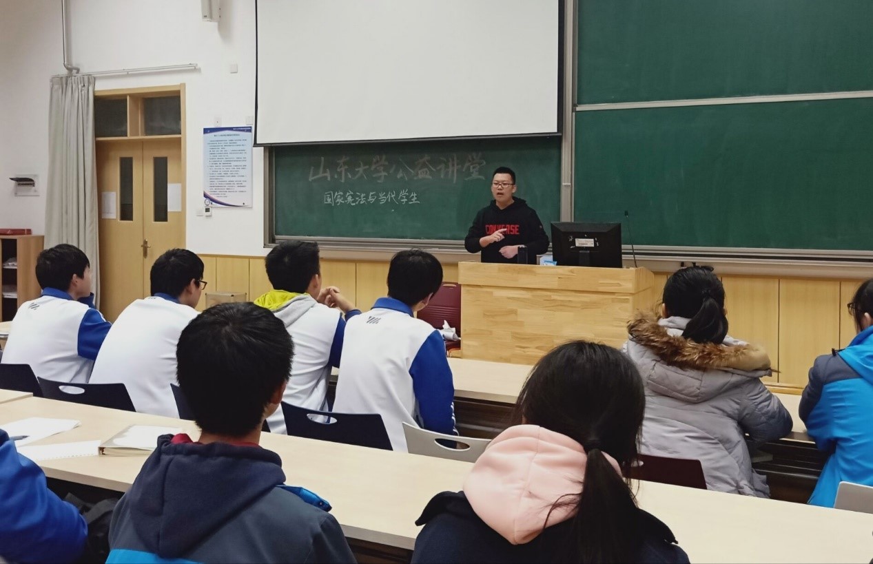 1212日下午,由共青团威尼斯144777视频官网委员会主办,威尼斯144777视频官网本科生联合会志愿服务部承办,青岛市十九中校方协办的“普法大讲堂”在青岛十九中顺利开展。威尼斯144777视频官网三位志愿者担任普法大讲堂的主讲人,向青岛市十九中学生代表传授了宪法方面的知识。