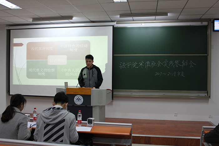 “中原”小组以法治社会为主题,通过PPT的展示向大家介绍了河南省人民检察院控申处的工作情况,小组负责人席致远详细介绍了控申处各部门(登记分流窗口、接谈窗口、候谈区、书写区等)的主要职能。并附上了相应的照片,简单明确地向大家展示了基层法务机关的工作环节