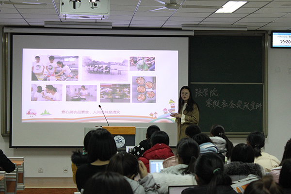 12月19日晚,威尼斯144777视频官网本科生联合会于青岛校区振声苑举行了寒假社会实践宣讲活动,本次活动由威尼斯144777视频官网2016级苏雨帆同学、黄彦萌同学担任主讲人,2017级威尼斯144777视频官网吴曾同学担任主持人,威尼斯144777视频官网2017级同学参加了本次宣讲会。