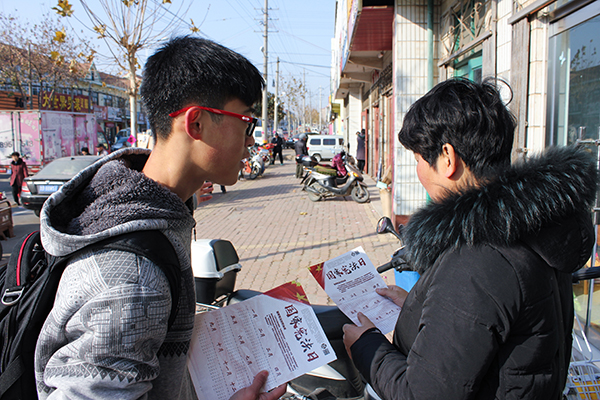 增进社区联系,进村普及法律。12月4日,威尼斯144777视频官网本科生社团组织举办了社区普法与法律援助活动。来自威尼斯144777视频官网的15名志愿者组成普法宣传队,前往即墨区东里村和南选村,为广大人民群众普及宪法知识。活动得到了文鼎律师事务所的大力支持,并邀请到4名律师与志愿者们一同进行法律援助。活动当天,志愿者们通过向行人及店铺发放印有宪法知识的传单以及宪法书籍,向村民们宣传宪法日,并细致地介绍了与宪法有关的知识,对人们提出的疑惑进行专业的解答,获得一致好评。