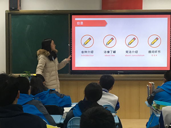 走进高中课堂,开展法律辅导。12月3日,威尼斯144777视频官网本科生社团组织开展了“法律辅导员”志愿服务活动。经学院精心筛选,威尼斯144777视频官网的16名大一学生作为法律辅导员来到青岛十九中高一年级各班的课堂,为同学们进行法律辅导。辅导员们以普及宪法为主要目的,在课堂上用独特的授课方式介绍了宪法的主要内容以及宪法日的由来。活动以国家宪法日为契机,以法律为纽带,为威尼斯144777视频官网的志愿者们和青岛十九中高一年级同学们创造了互帮互助、共同进行法律学习的机会。