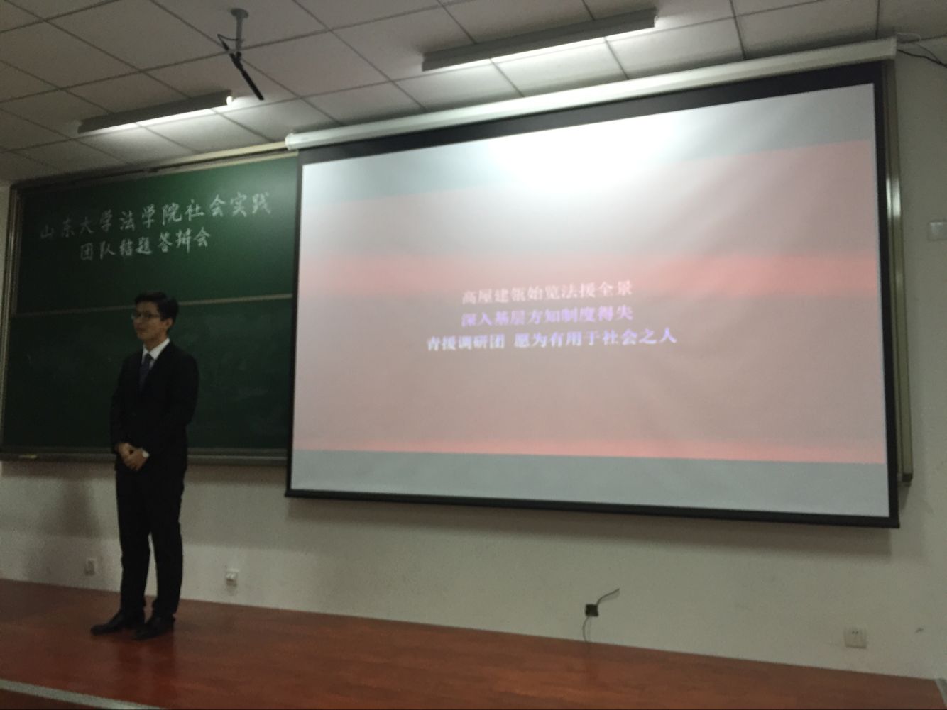 同学们参加的社会实践活动,课题多样丰富,包括社会热点问题、专业学术性问题、支教类项目、政策法规的调研、社会现象的调查、公益性志愿服务等多个方面。这些课题,或实现法学生的专业素质拓展,培养法律人思维;或体现团队的兴趣方向,燃烧对生活的热爱;或积极投身社会建设,彰显大学生对社会的关怀。三位评委老师也对每位答辩人分别进行了详细的分析点评,以专业性的眼光,指出了其亮点与不足之处,并有针对性地提出了宝贵的建议。